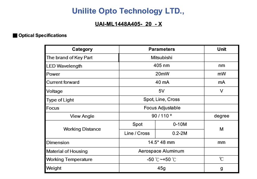 UAI-ML1448A405- 20 - X 405nm Purple Laser Positioning