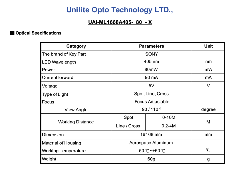 UAI-ML1668A405- 80 - X 405nm Purple Laser Positioning